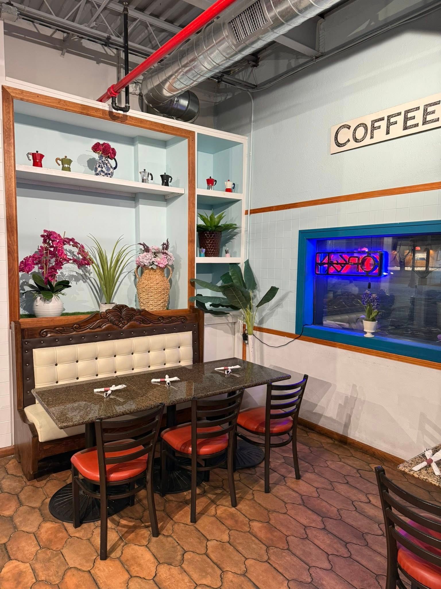 Excellent experience with a great feel and excellent breakfasts! Wife and I just thought we'd give it a try for Sunday brunch! It was excellent with a great waitress, wonderful music and pleasant staff!