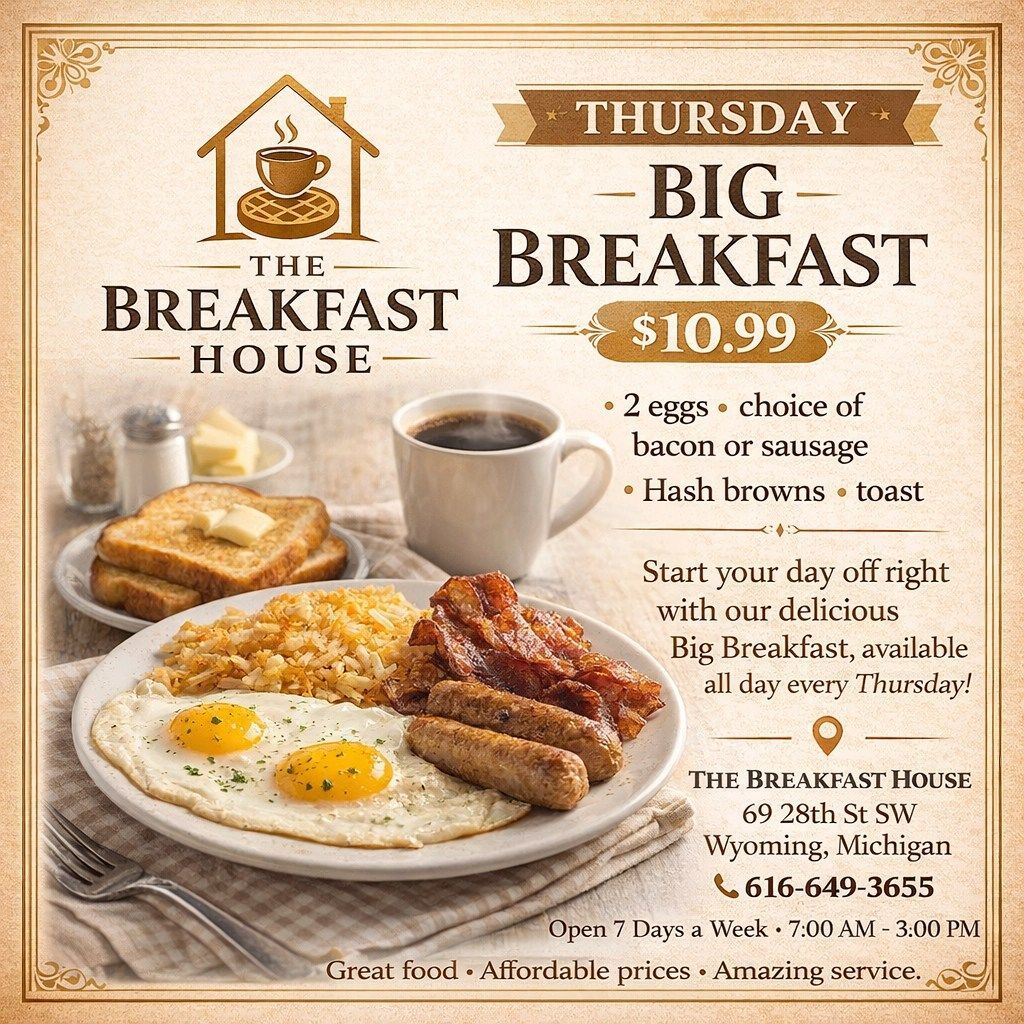 Call or visit The Breakfast House in Grand Rapids to learn more about dining options and event availability.